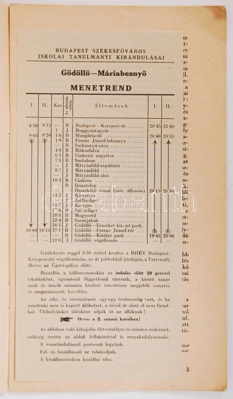 1942 Budapest székesfőváros iskolai tanulmányi kirándulásai Gödöllő, Máriabesnyő BHÉV menetrenddel
