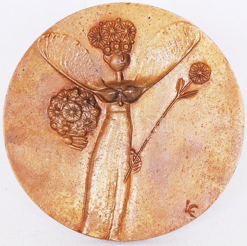 Ligeti Erika (1934-2009): Tündér. Bronz plakett, jelzett, díszdobozban...