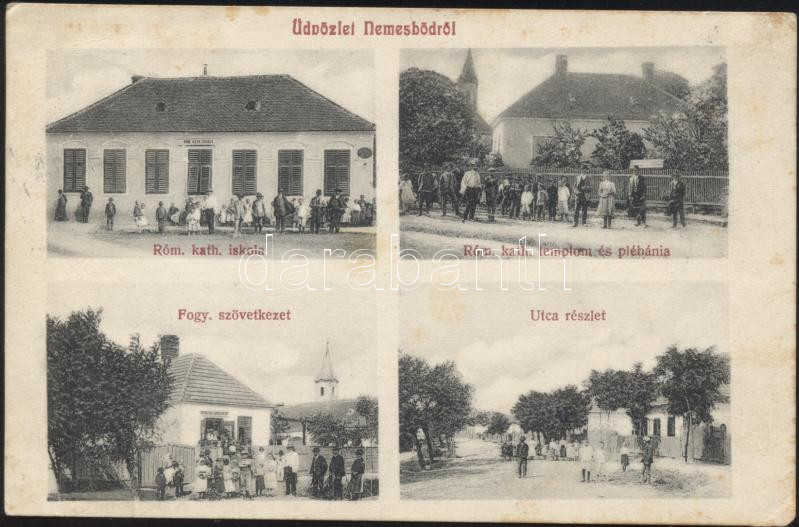 Nemesbőd fogyasztási szövetkezet, Római katolikus iskola, templom és p...