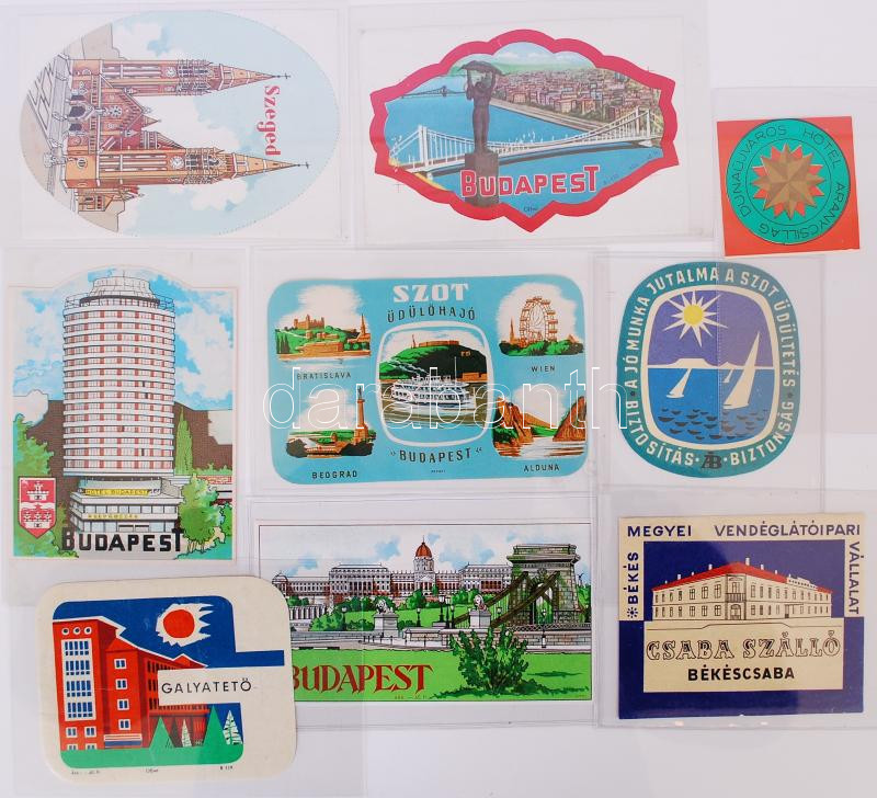cca 1970-1980 9db magyar bőröndcímke