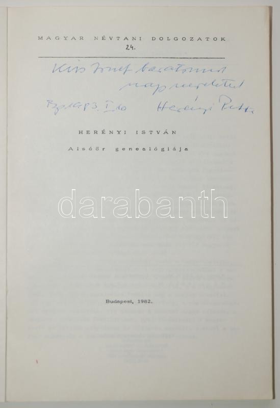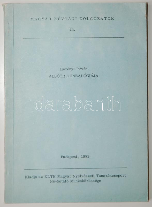 https://www.darabanth.com/en/176-Online-auction/176.0/Other-collectibles/Books-Other-rarities~2000037/Magyar-Nevtani-Dolgozatok-24-Herenyi-Istvan-Alsoor-genealogiaja-Bp-1982-ELTE-Magyar-Nye~II617055