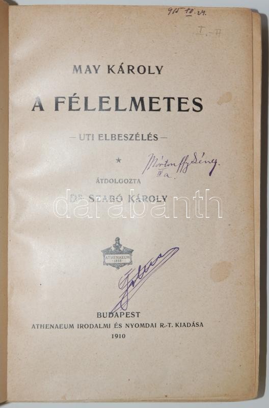 May Károly: A félelmetes. Budapest 1911. Athenaeum. Egész vászon kötésben, néhány lap kijár