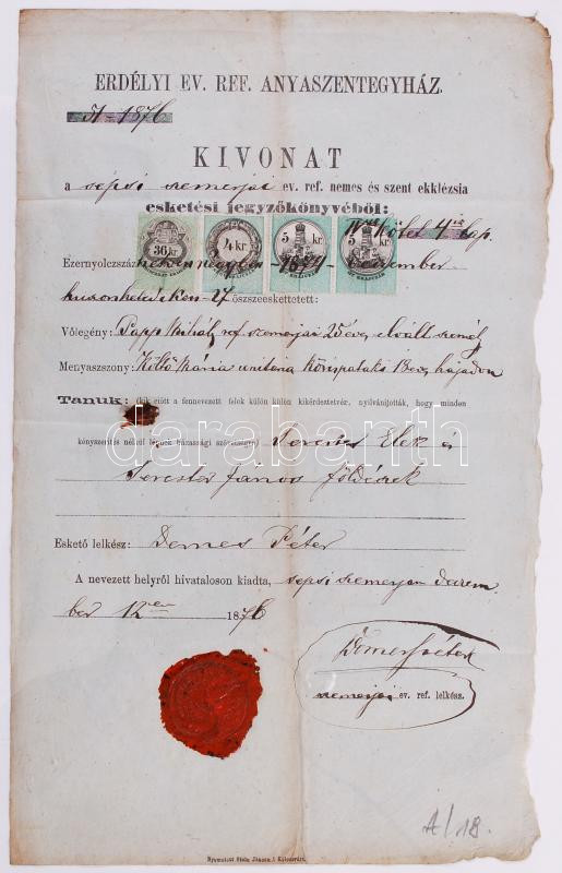 1876 Esketési jegyzőkönyv okmánybélyegekkel
