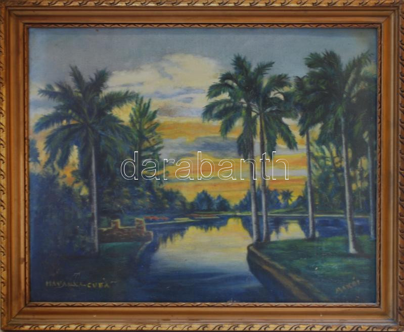 https://www.darabanth.com/en/176-Online-auction/176.0/Other-collectibles/Paintings-and-graphics~2000001/Makoi-jelzessel-Havanna-Cuba-olaj-karton-uvegezett-szep-keret-47C39757-cm~II581569