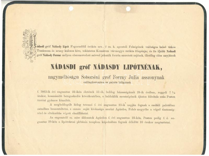 https://www.darabanth.com/en/176-Online-auction/176.0/Other-collectibles/Printed-Materials~2000024/1863-grof-Nadasdy-Lipotne-csillagkeresztes-palotaholgy-gyaszjelentese-Szakadassal~II612055