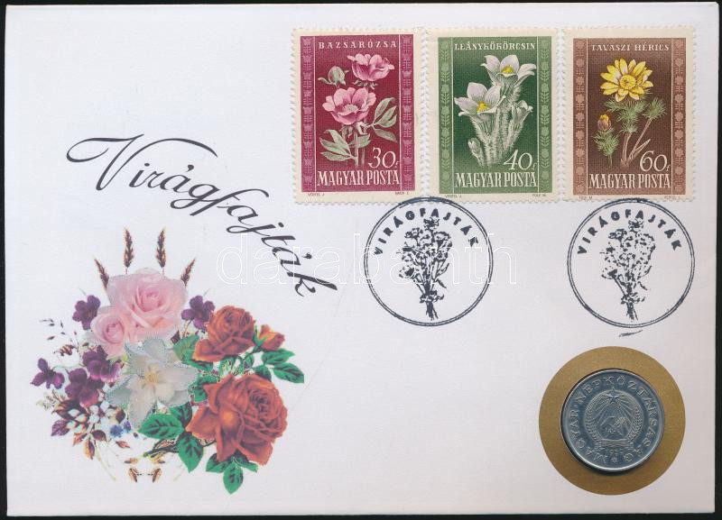1950. 2Ft "Virágfajták" érmés bélyeges boríték alkalmi bélyegzővel, bélyegsorral T:1-