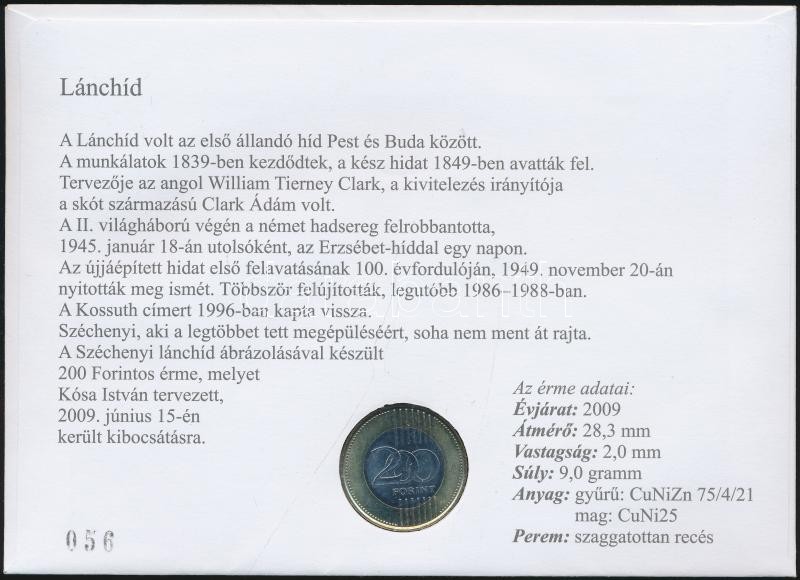 2009. 200Ft "Budapesti hidak egykor és ma - 160 éves a Lánchíd" érmés ...