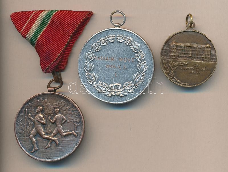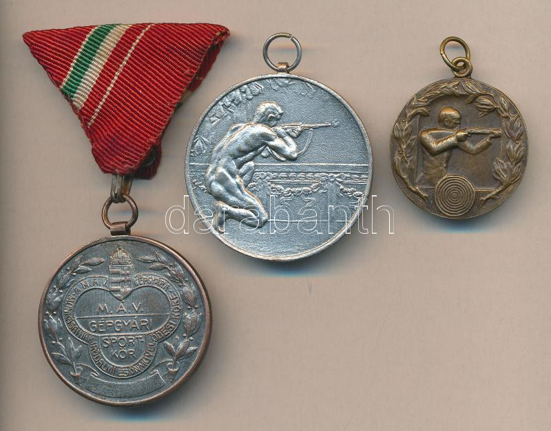 3db különféle sportérem , kettő lövészet, harmadik szignózott Berán "M.Á.V. Gépgyári Sportkör" ezüstözött Br T:2