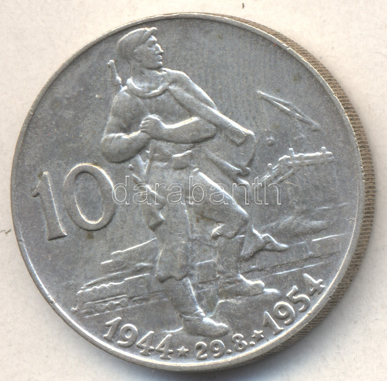 https://www.darabanth.com/en/177-Online-auction/177.0/Numismatics/Foreign-coins~3300033/Csehszlovakia-1954-10K-Ag-Szlovak-felkeles-T2-3Cbr3ECzechoslovakia-1954-10-Korun-Ag-10th-Ann~II620335