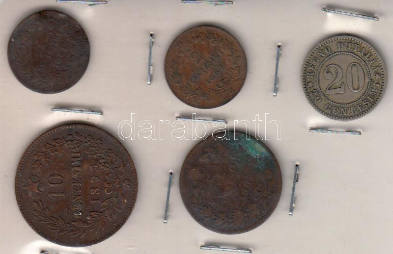 Olaszország 1861-1894. 5db pénzérme, közte magyar verdejelű 20c! T:2,3...