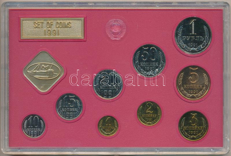 Description: Szovjetunió 1991. forgalmi szett 1k - 1R + Leningrád pénzverde emlékzseton T:1