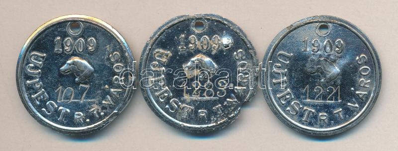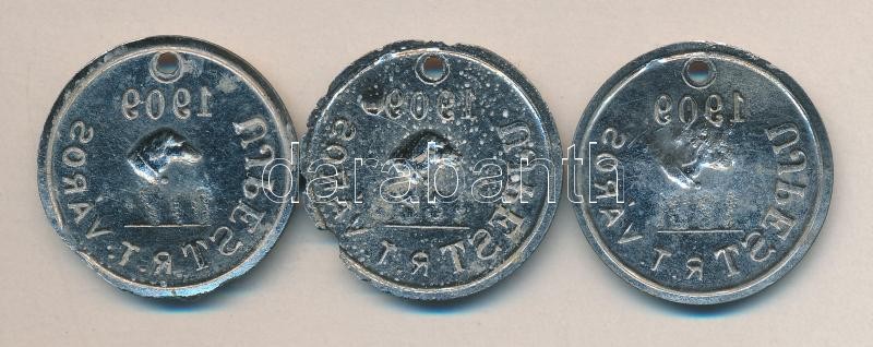 1909. Újpest városi sorszámozott kutyabárca (3db) T:2,3