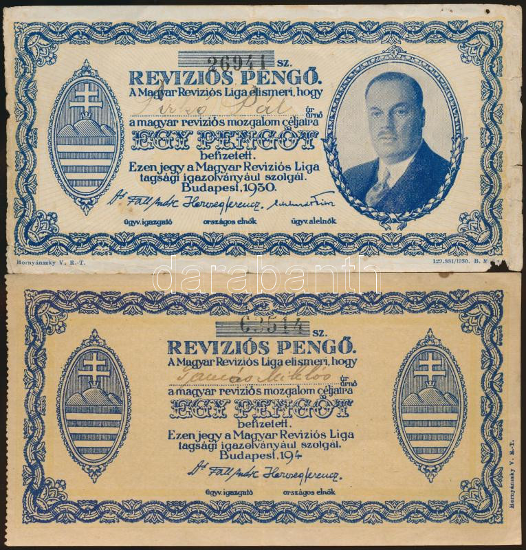 Budapest 194? + 1930. "Reviziós Pengő" 2klf változata T:II-,III-