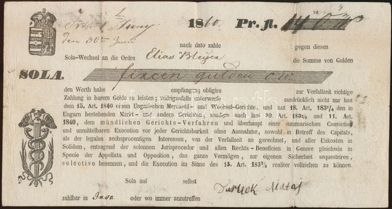Irsa 1860. német nyelvű váltó kifizetésről T:III