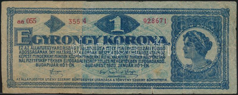 1920. 1K-ból összeragasztott "Egy Rongy Korona" T:III