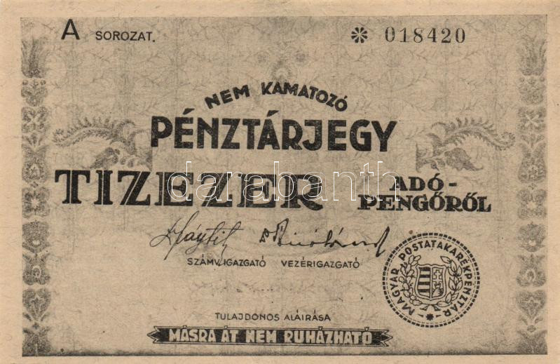 1946. 10.000AP nem kamatozó Pénztárjegy "Másra Át Nem Ruházható" T:II