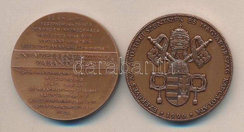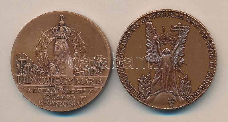 Bozó Gyula (1913-2004) 1994. "Nemzeti Engesztelő Zarándoklat / Fatimai szentély Szűzanya szobra" Br emlékérem (42mm) T:1 + 1996. "Ezeréves az apostoli Szentszék és Magyarország Kapcsolata" Br emlékérem (42,5mm) T:2