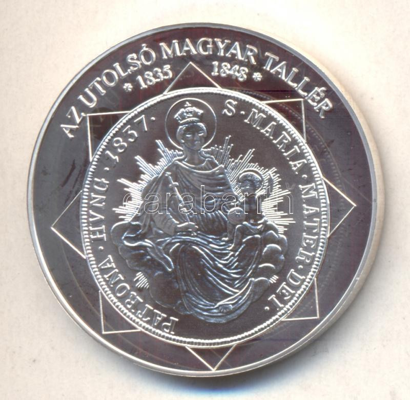 DN "A magyar nemzet pénzérméi - Az utolsó magyar tallér 1835-1848." Ag (0,999) emlékérem (10,37g/35mm) T:PP tanúsítvánnyal!