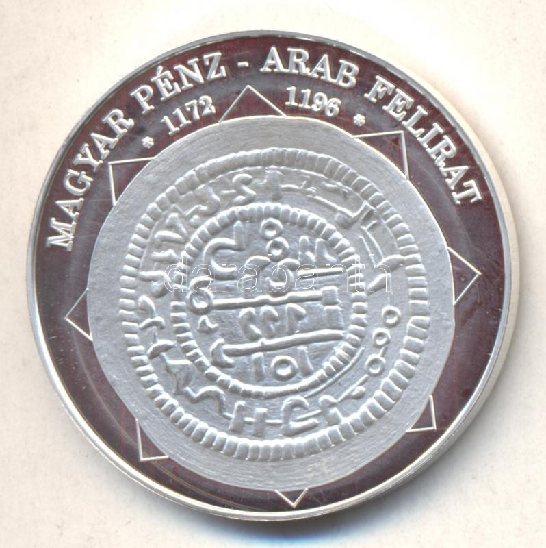 https://www.darabanth.com/en/177-Online-auction/177.0/Numismatics/Hungarian-commemorative-medals-plaques-badges~3300030/DN-A-magyar-nemzet-penzermei--Magyar-penz-arab-felirat-1172-1196-Ag-0-999-emlekerem-10-3~II620592