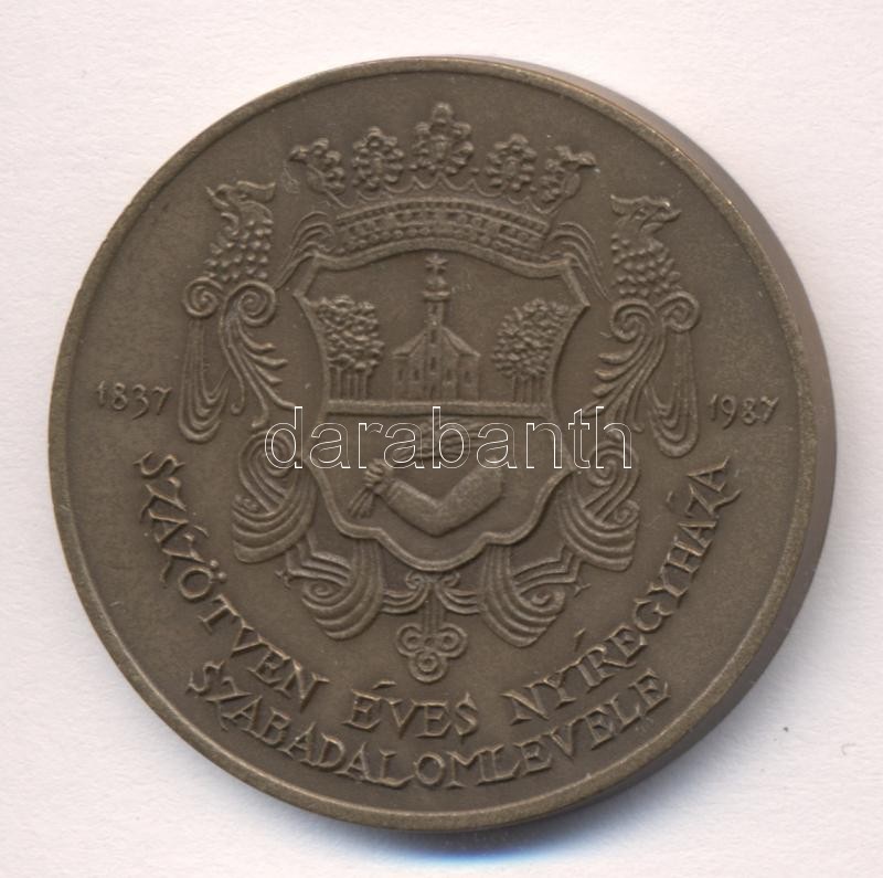 Nagy Lajos (1949-) 1987. "MÉE Szabolcs-Szatmár megyei szervezet / Nyíregyháza szabadalom levele 150 éves" Br emlékérem (42,5mm) T:1