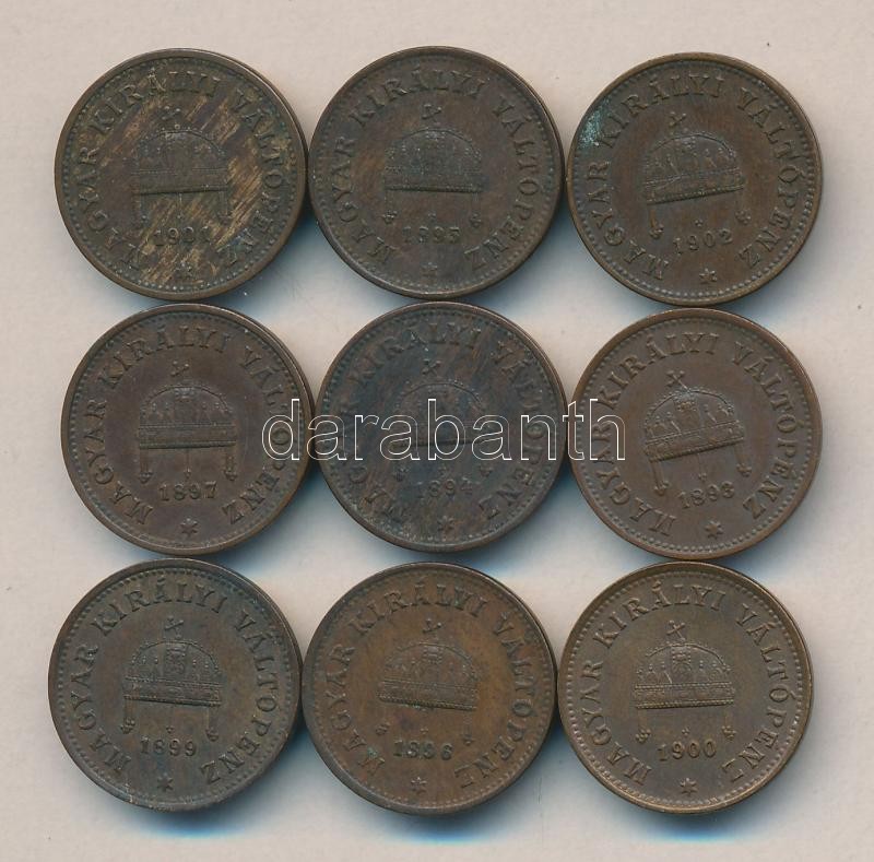 https://www.darabanth.com/en/177-Online-auction/177.0/Numismatics/Hungarian-metal-and-silver-coins~3300029/1893-1902-1f-9x-mind-klf-T2~II621266