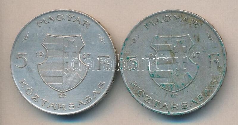1947. 5Ft Ag "Kossuth" (2x) T:2-,3