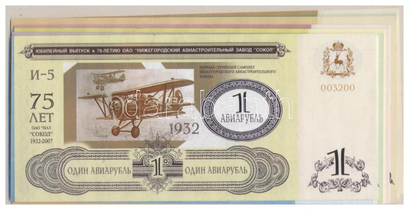 Russia 2007. 18 different commemorative special banknotes from 1 Ruble - 1.000.000 Rubles "75th Anniversary of Flying" C:unc