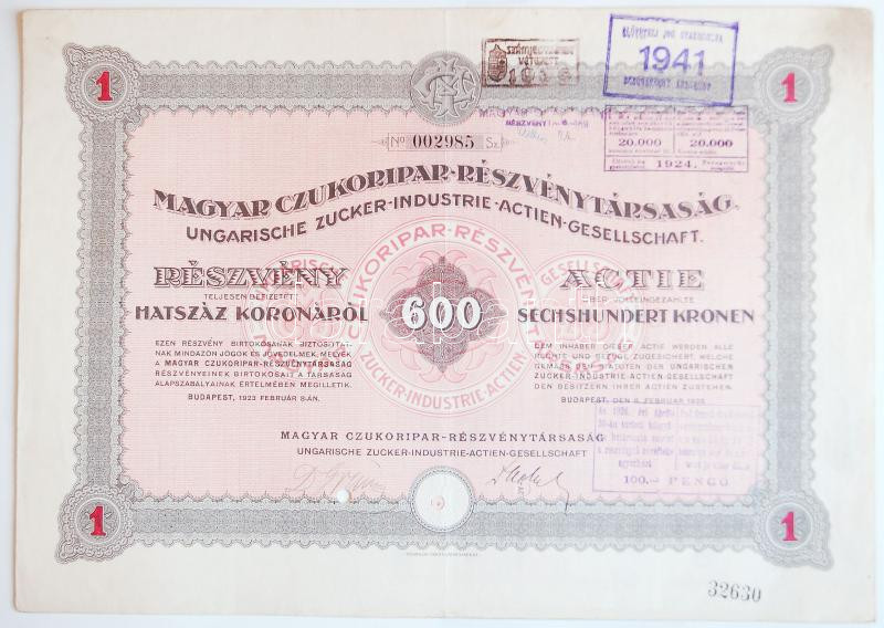 https://www.darabanth.com/en/177-Online-auction/177.0/Numismatics/Shares-and-Tickets~3300026/Budapest-1923-Magyar-Czukoripar-Reszvenytarsasag-reszvenye-600K-rol-szelvenyekkel-Thajto~II624074