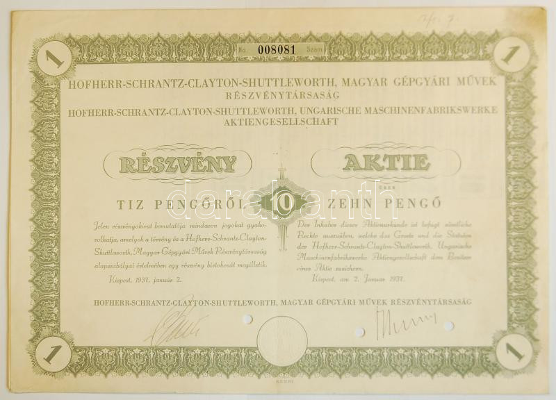 https://www.darabanth.com/en/177-Online-auction/177.0/Numismatics/Shares-and-Tickets~3300026/Kispest-1937-Hoffher-Schrantz-Clayton-Shuttleworth-Magyar-Gepgyari-Muvek-Reszvenytarsasag~II624009