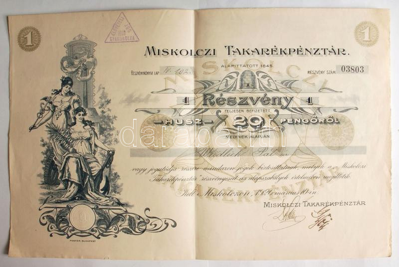 https://www.darabanth.com/en/177-Online-auction/177.0/Numismatics/Shares-and-Tickets~3300026/Miskolc-1926-Miskolczi-Takarekpenztar-reszvenye-20P-rol-szelvenyekkel-Tketszer-hajtott~II623936