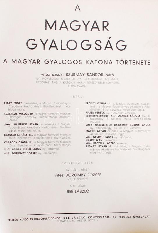 A Magyar gyalogság. A magyar gyalogos katona története. Szerk.: Doromby József - Reé László. Jó állapotban.