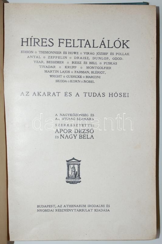 https://www.darabanth.com/en/177-Online-auction/177.0/Other-collectibles/Books-Science-and-thechnology~200027/Apor-Nagy-szerk-Hires-feltalalok-Bp-Athenaeum-Hibas-festett-egeszvaszon-kotesben~II620174