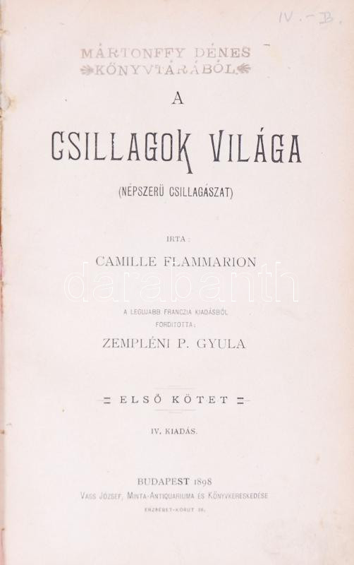Camille Flammarion: A csillagok világa. Népszerü csillagászat I-II. Fo... https://www.darabanth.com/en/177-Online-auction/177.0/Other-collectibles/Books-Science-and-thechnology~200027/Camille-Flammarion-A-csillagok-vilaga-Nepszeru-csillagaszat-I-II-Ford-Zempleni-P-Gyula-Bp~II620971