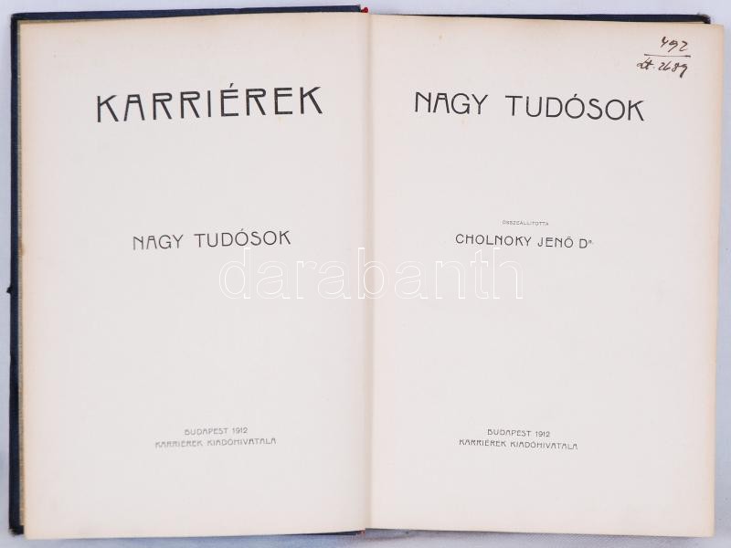 Dr. Cholnoky Jenő: Nagy Tudósok (karriérek). Budapest 1912. Karriérek ...