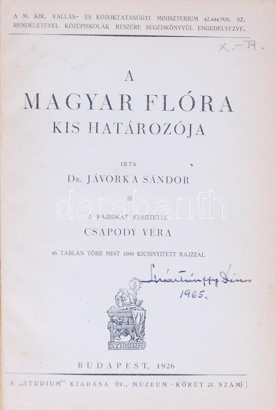 Dr. Jávorka Sándor: A magyar flóra kis határozója. 46 táblán több mint... https://www.darabanth.com/en/177-Online-auction/177.0/Other-collectibles/Books-Science-and-thechnology~200027/Dr-Javorka-Sandor-A-magyar-flora-kis-hatarozoja-46-tablan-tobb-mint-1000-kicsinyitett-ra~II620479