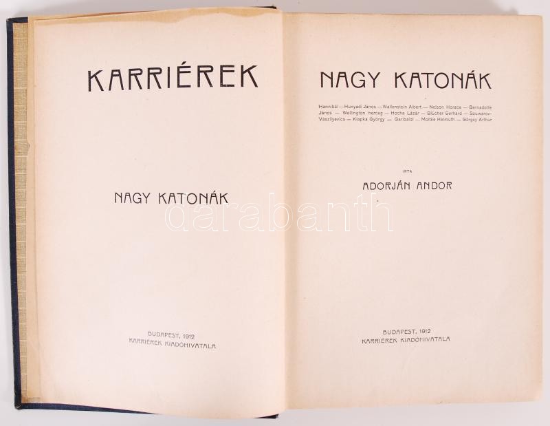 Karriérek sorozatból, Adorján Andor: Nagy Katonák. Bp., 1921 Singer és...