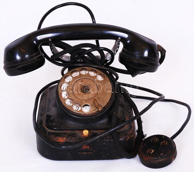 Régi telefon, viseltes állapotban, m:19 cm, h:24 cm