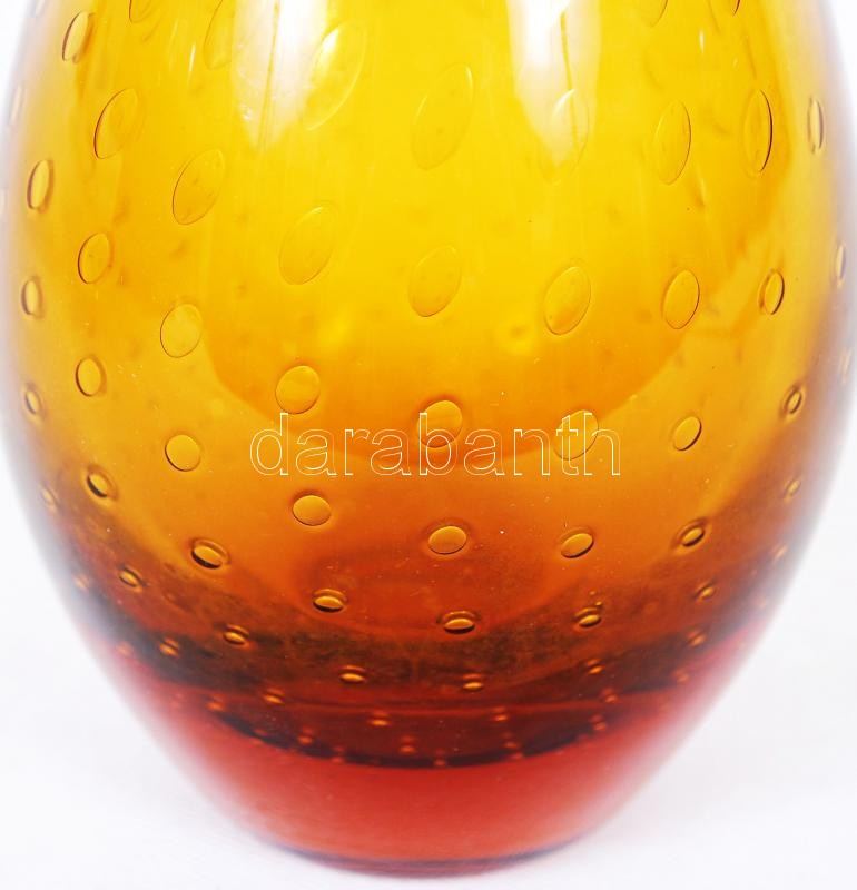 Formába fújt, lébgbuborékos, jelzett üveg vázácska /
