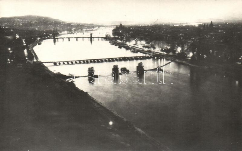 Budapest a lebombázott Erzsébet híd újjáépítése, ideiglenes híd, fotó (non pc)