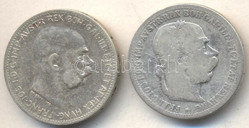 Austria 1894. 1 Corona Ag + 1914. 1 Corona Ag C:VF,F