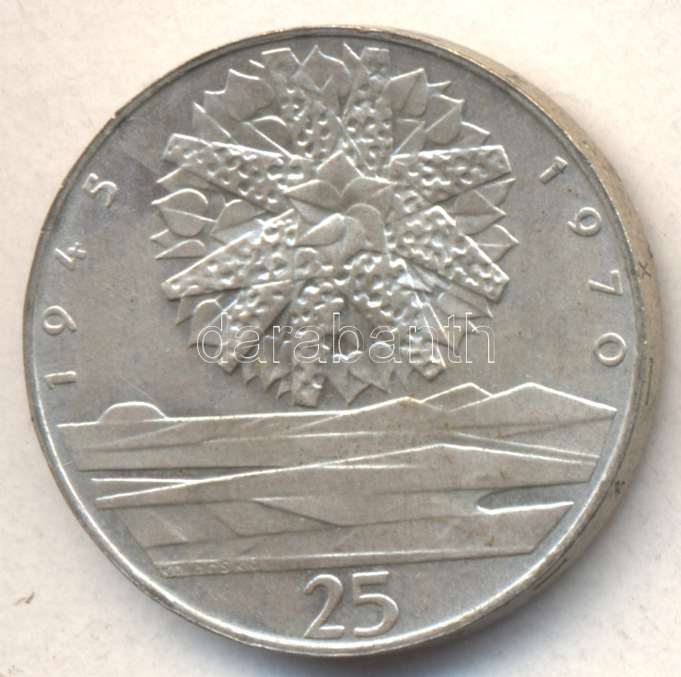 https://www.darabanth.com/en/178-Online-auction/178.0/Numismatics/Foreign-coins~600149/Csehszlovakia-1970-25K-Ag-A-szabadsag-25-evforduloja-T2-3Cbr3ECzechoslovakia-1970-25-Korun-~II624642