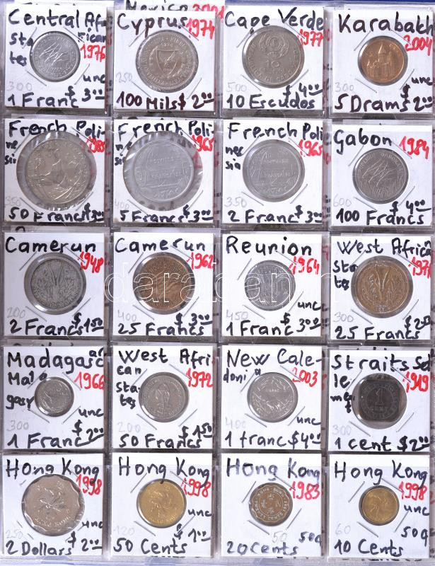 Mixed world coin collection with 160 pieces of coin of 120 countries, with lots of Unc and PP coins C:mixed