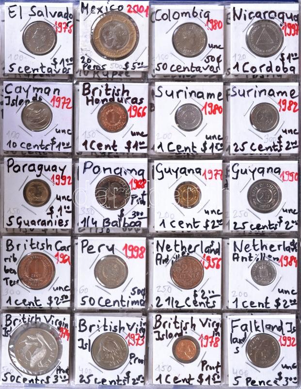 Description: Külföldi fémpénz gyűjtemény albumba rendezve, összesen 160db pénzérme 120 ország érméiből, sok Unc és PP darabbal T:vegyes
