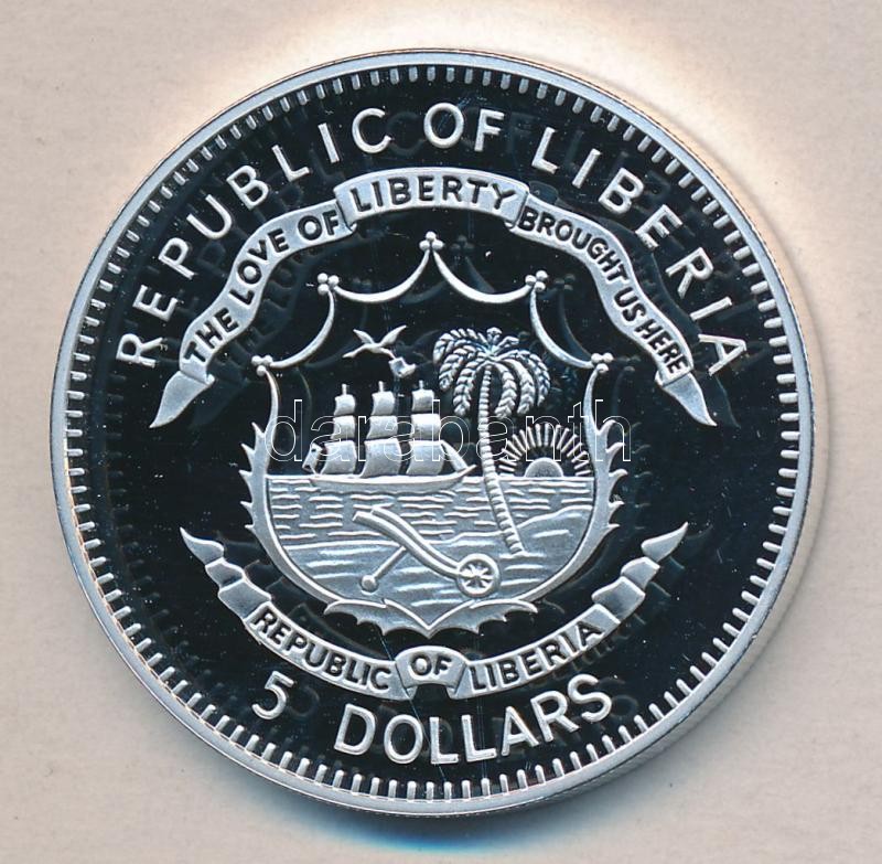 Description: Libéria 2009. 5$ ezüstözött Cu "Nagy Hadvezérek / Árpád fejedelem" T:PP Csak 2000db!