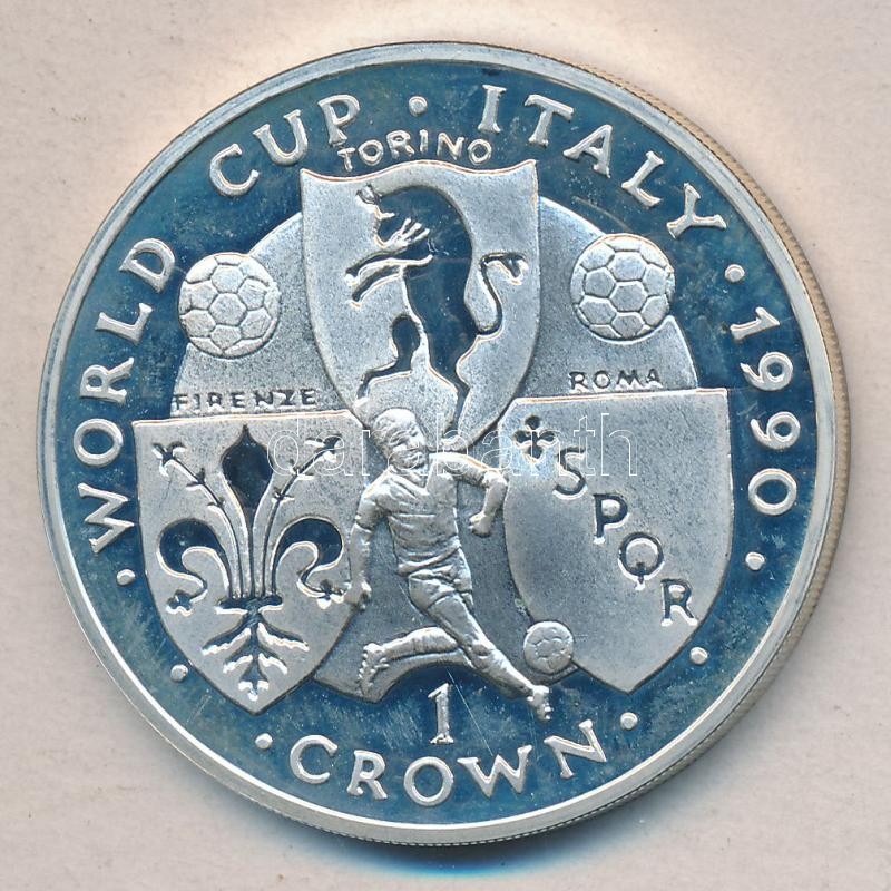 Isle of Man 1990. 1 Crown Ag "World Cup - Italy / Soccer players and shield" C:PP