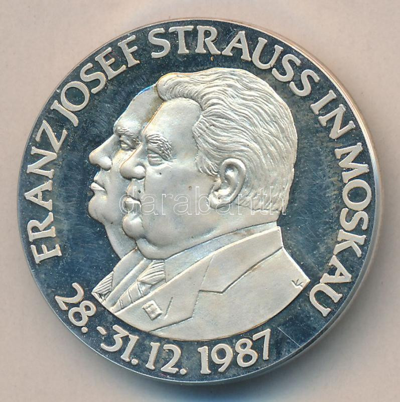 NSZK 1987. "Franz Josef Strauss Moszkvában" Ag emlékérem (19.91g/0.999... https://www.darabanth.com/en/178-Online-auction/178.0/Numismatics/Foreign-precious-commemorative-medals-plaques-badges~600150/NSZK-1987-Franz-Josef-Strauss-Moszkvaban-Ag-emlekerem-1991g099935mm-TPP-3Cbr3EGFR-1987-~II626603