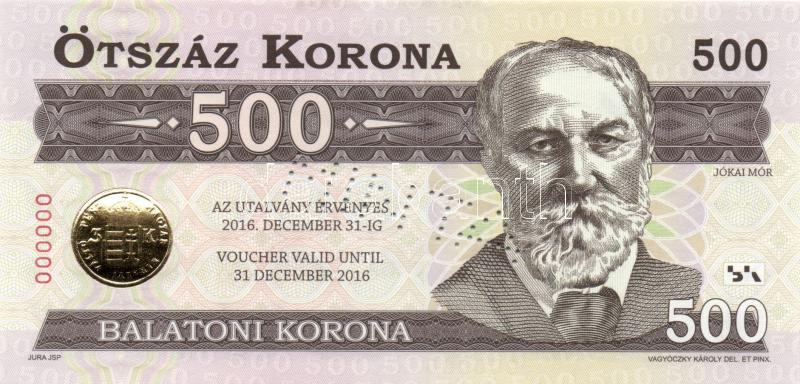2012. "Balatoni Korona" helyi pénz sorozat: 500K "MINTA" + 1000K "MINTA" + 2000K "MINTA" + 5000K "MINTA" + 10.000K "MINTA" + 20.000K "MINTA" T:I