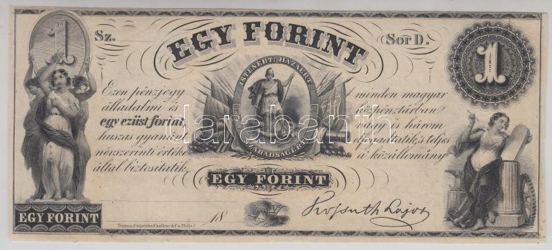 1852 Emigrációs "Kossuth bankó" 1Ft keltezés nélkül "D" T:I-