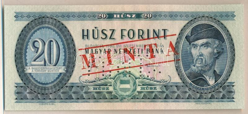 1980. 20Ft "MINTA" perforációval és felülnyomással "C 000" sorozatszám...