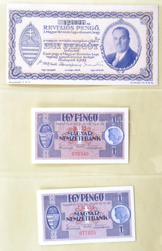 73db különféle bankjegy 1P, 2P, 5P, 10P "Deák", 10P felülbélyegzettek is, 20P, 50P kétféle 1945. 50P T:I, felülbélyegzettek is, 100P többféle, 1943. 100P "Szálasi" T:I, 500P, 1000P többféle, 1943. 1000P T:I, 10.000P - 100.000.000BP, 14klf Adópengő, Nem Kamatozó Pénztárjegy 10.000AP / 100.000Ap / 1.000.000AP / 10.000AP, "A Vöröshadsereg Parancsnoksága" teljes sor! T:I,II,(kevés III,IV)